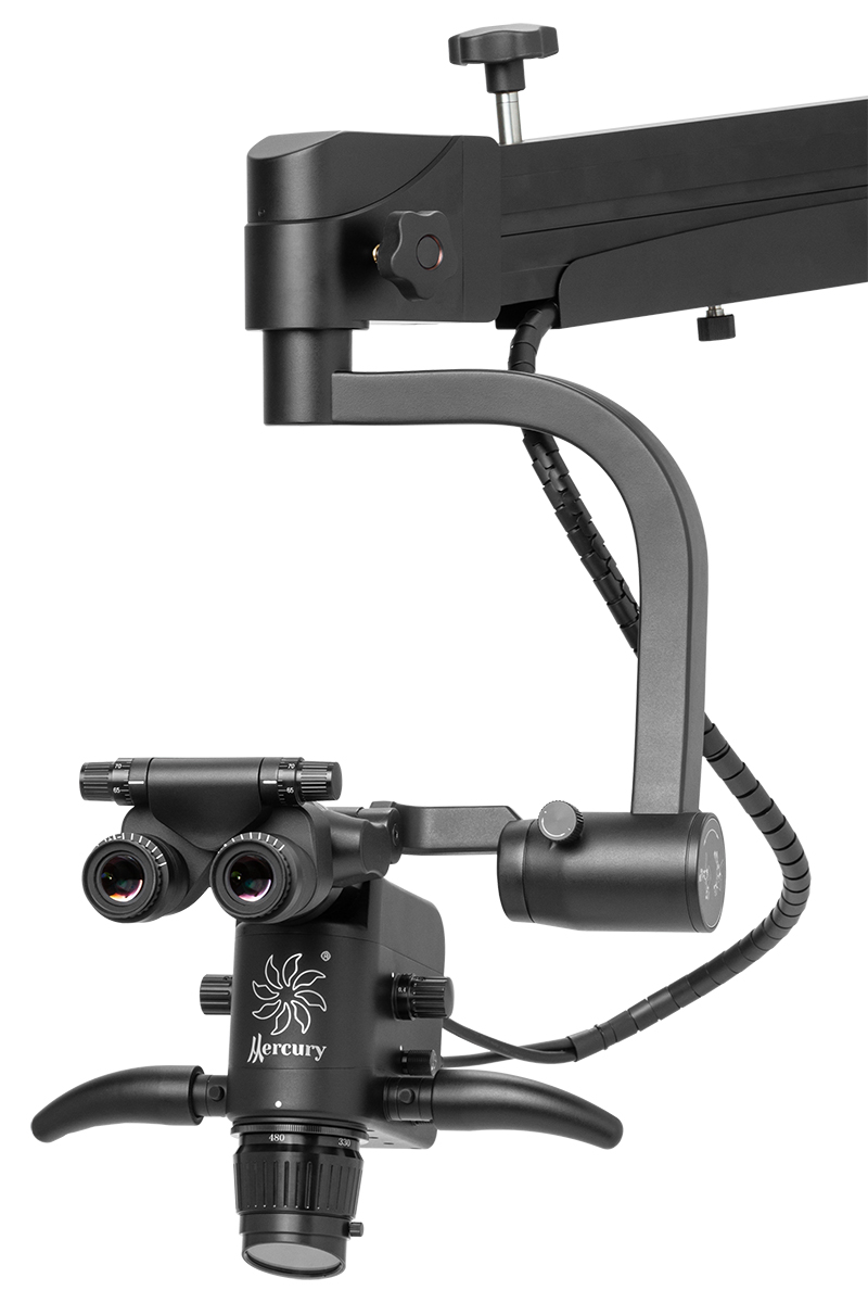 - Микроскоп можно плавно перемещать и фиксировать в любом положении. Длина плеча — 1860 мм.