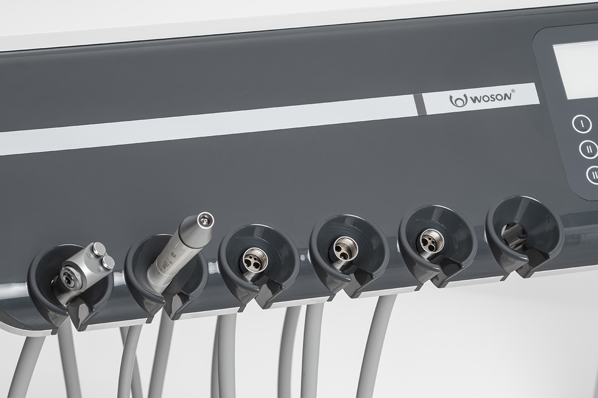 • Модуль ассистента на четыре инструмента с пылесосом и слюноотсос, пистолет вода-воздух.