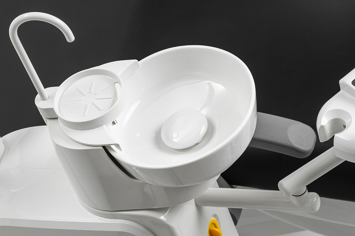 • Плевательница поворачивается на 90 градусов, выполнена из двух частей.
